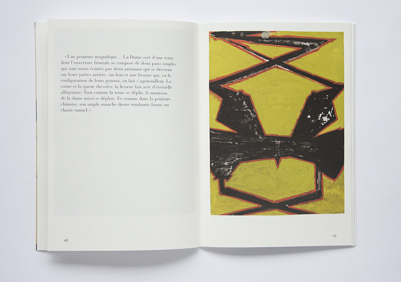The book Mon seul désir is a follow-up to Nocturne (2013). It contains reproductions of works on paper by Carole Vanderlinden and an oniric essay of Hans Theys, inspired by Carole’s works on paper and the medieval tapestry La dame à la licorne.” Hans Theys