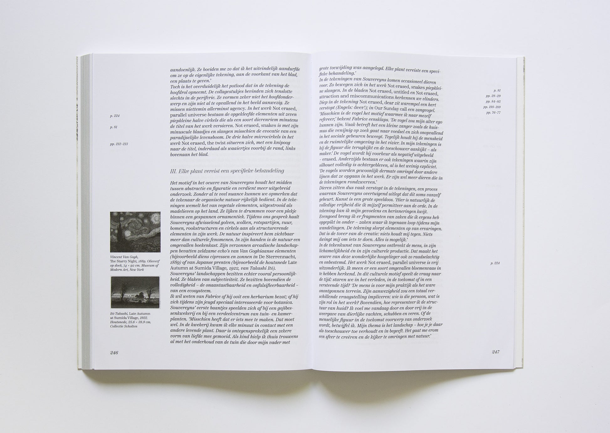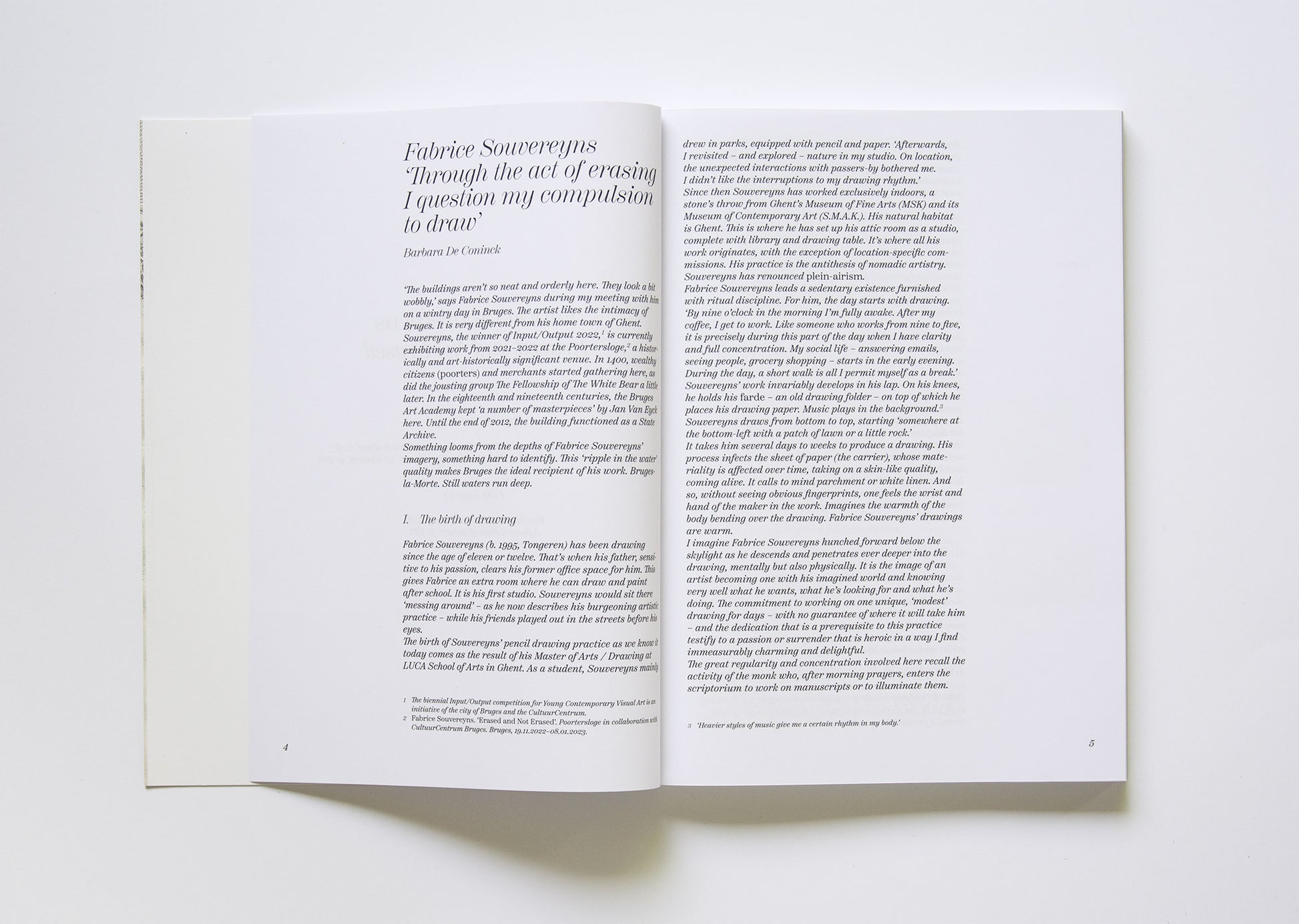 Souvereyns makes use of this frame of reference but also leaves room for his personal formal language. As a result, a certain universality and restraint always hangs around his drawings: although they are based on centuries-old natural landscapes, we cannot exactly find them in reality. The line between reality and the (sub)consciousness blurs. While working, he is guided by spontaneity yet the drawings are not simply the result of automatism. Each movement, whether adding or omitting, leaves a unique trace, and is a deliberate choice by the artist.