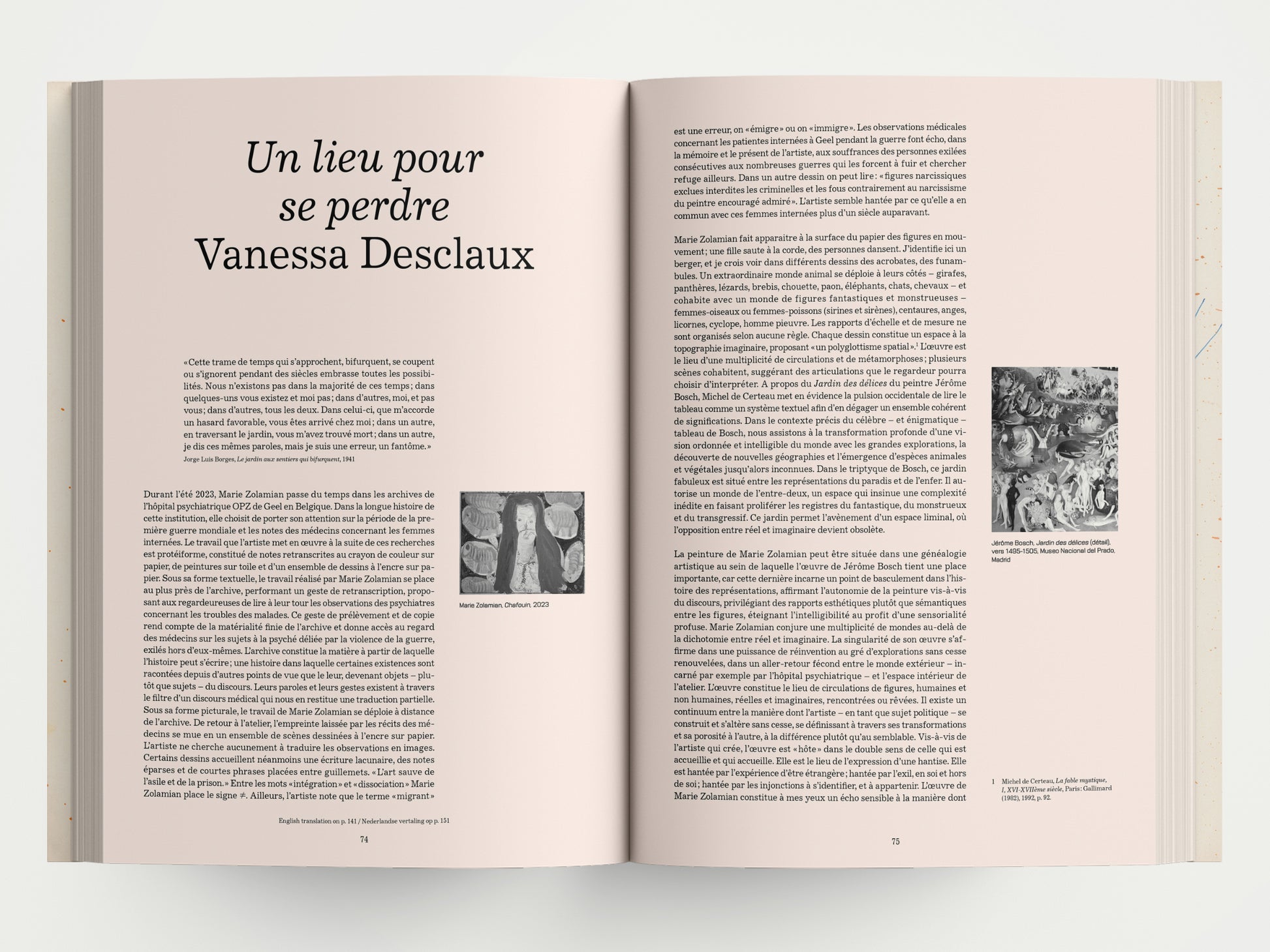 The book ‘Le jardin sans soleil’ [The sunless garden] accompanies Zolamian’s solo exhibition ‘Confabulations’ at WIELS, Contemporary Art Center Brussels, from 21 February to 17 May 2026.