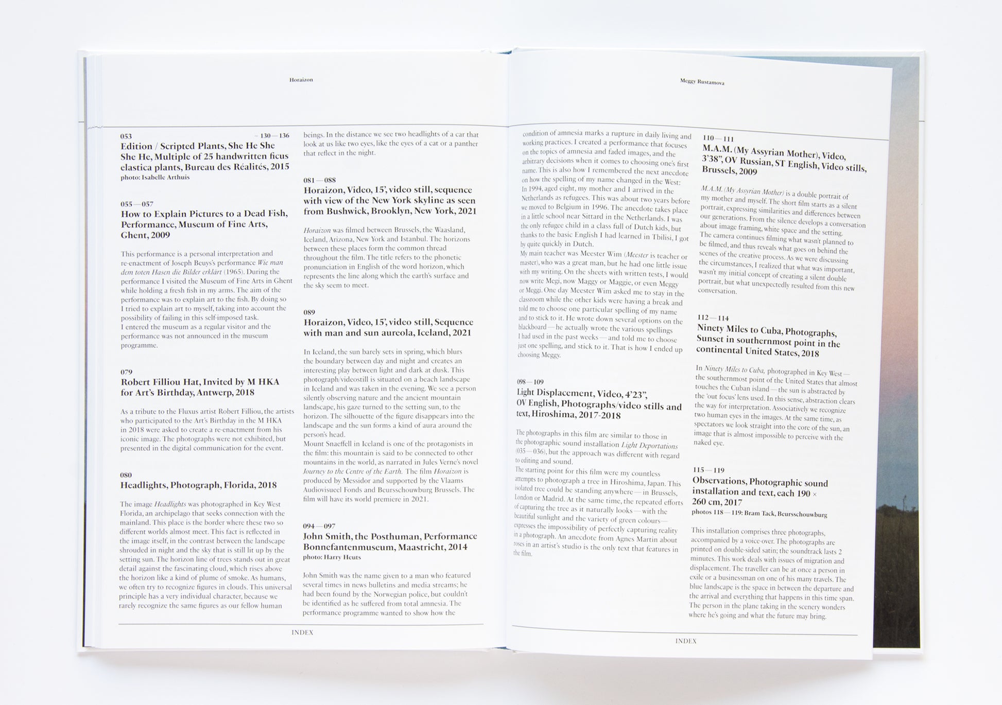 The title of the book, HORAIZON, refers to the phonetic pronunciation of the English word ‘horizon’, the boundary line on which the earth’s surface and the sky seem to touch. The horizon, interpreted as ‘boundary’ or ‘line’, is equally perceptible in language, when reading between the lines, or when travelling between international borders. The works suggest a longing for what lies behind the horizon and invite the viewer to make an imaginary journey.