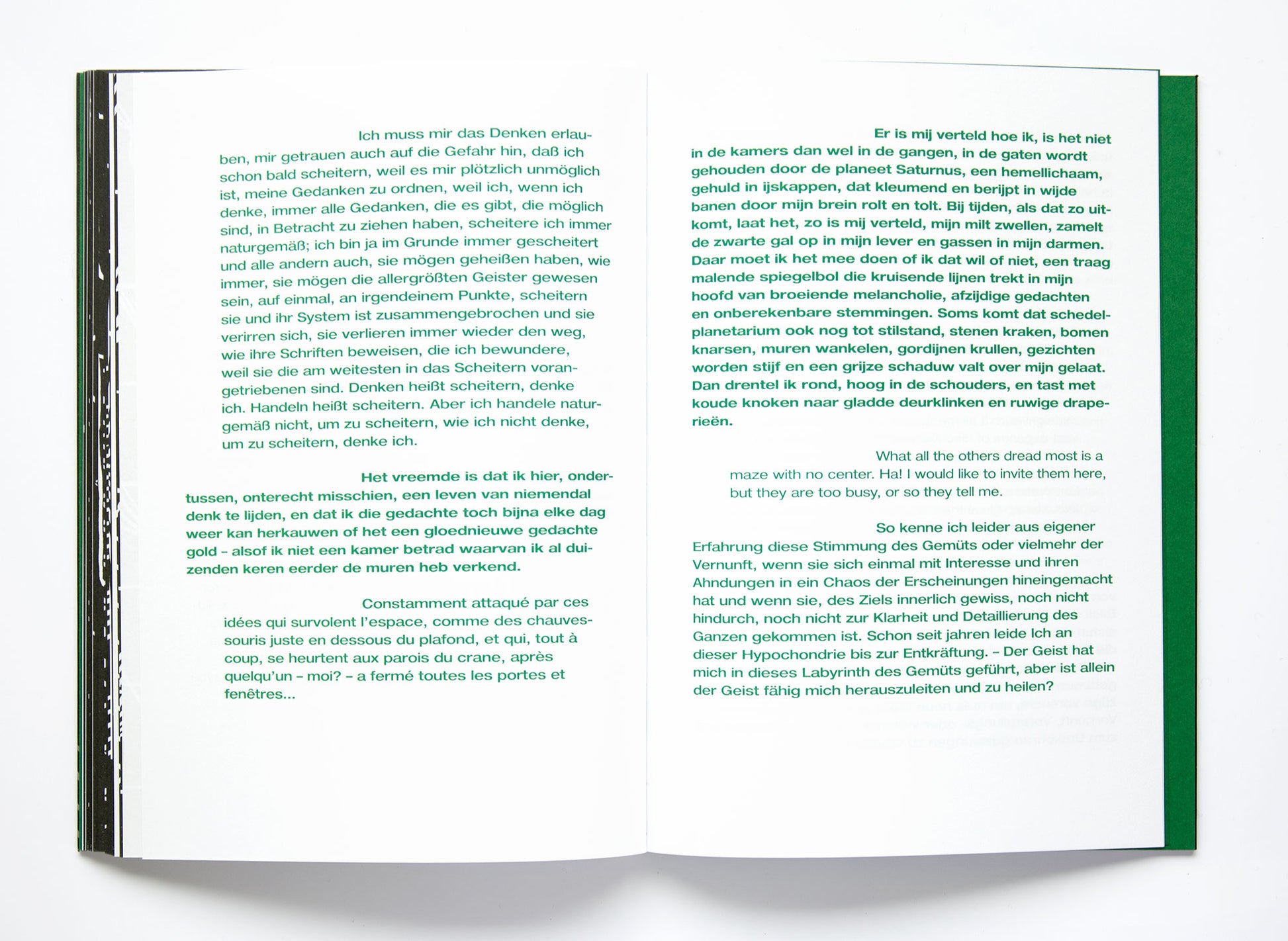 All images in the book are woodcuts. Christophe Van Gerrewey has written a text that actually creates an imbroglio. The entire book is printed in letterpress.