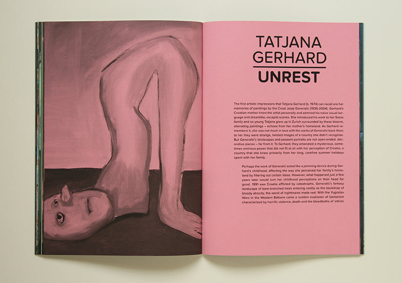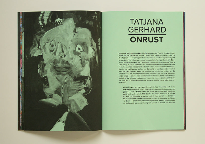 “The work of Tatjana Gerhard confronts us with a certain sense of unrest, a feeling that the artist no doubt experiences while at work in her atelier. The art world may seem for many a social and mundane affair, but the life of the artist is often one of loneliness and doubt and the restlessness that results from this. This existential ill-ease that nestles in Gerhard’s work is visually manifest as the alienated person in an undefined space. The world portrayed by Gerhard is hard to accept at first and yet, strangely, very relatable. As a viewer you wander through the sometimes obscure chambers of the artist’s imagination, before finally getting lost and coming out the other side wound up in your own existential questions. Although Gerhard’s paintings may seem forceful, with her images the artist only ‘forces’ our way of viewing to twist and turn back on itself; she doesn’t like to explain herself and most of her works never receive a title. This is a conscious choice as words often give an all-too-clear and one-dimensional meaning to a work, or serve to make the image purely anecdotal. Gerhard succeeds in making images that have immense presence and yet remain ambiguous. This is typical of her searching approach to painting, in which it is no less challenging for the artist to gain a grip on her images as it is for the viewer.”